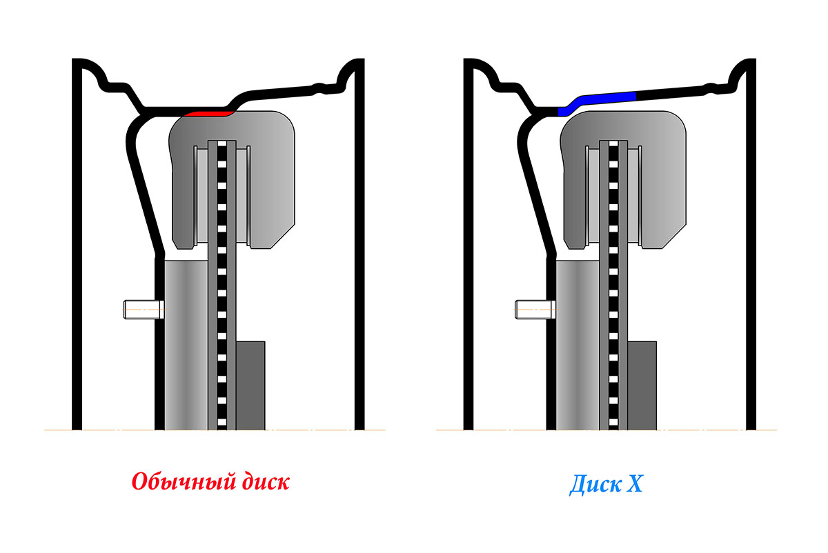 Модели дисков, содержащие индекс X в конце артикула, отличаются от обычных дисков измененным внутренним профилем. За счет увеличения внутреннего пространства диски этой серии могут быть установлены в тех случаях, когда тормозной суппорт машины мешает установке диска с точно такими же параметрами.