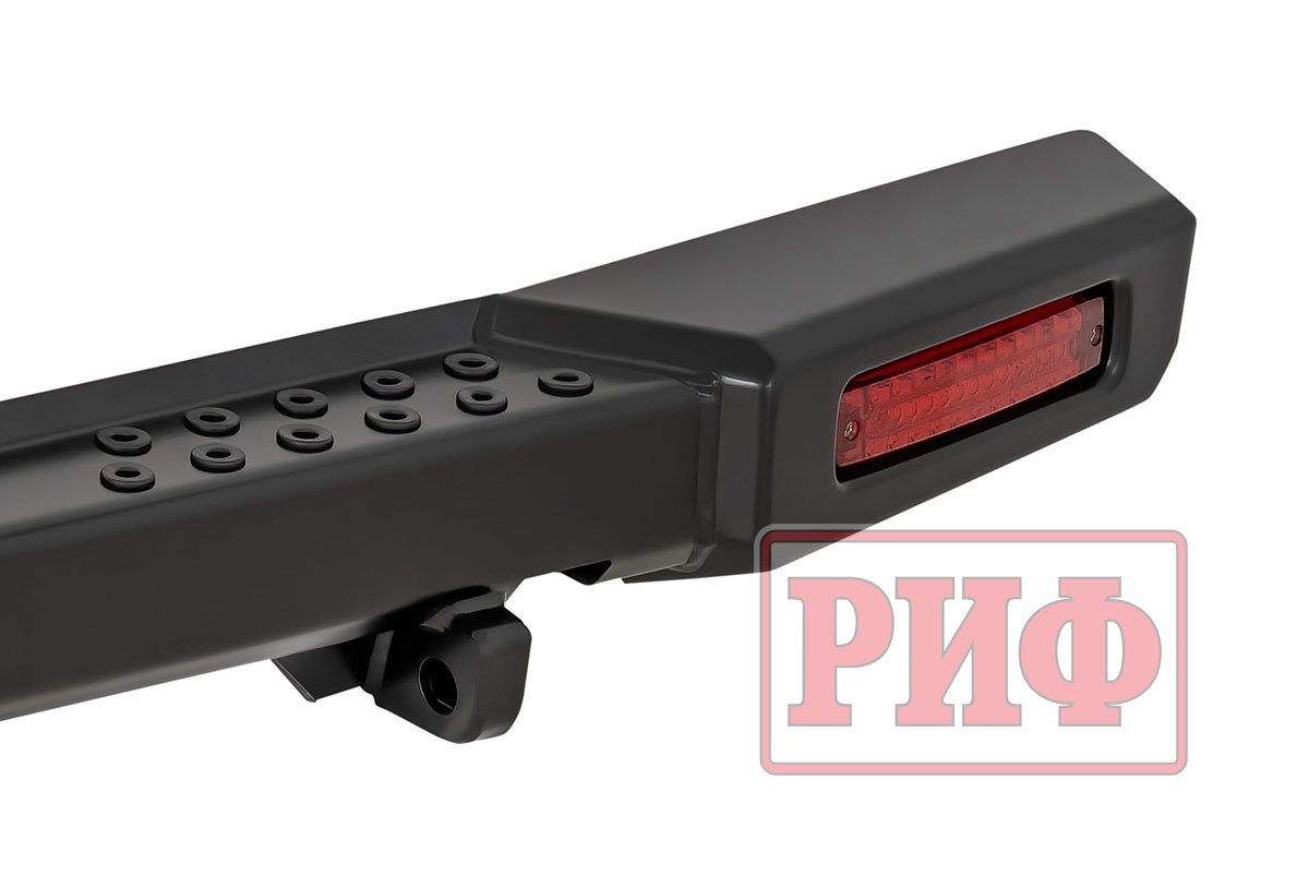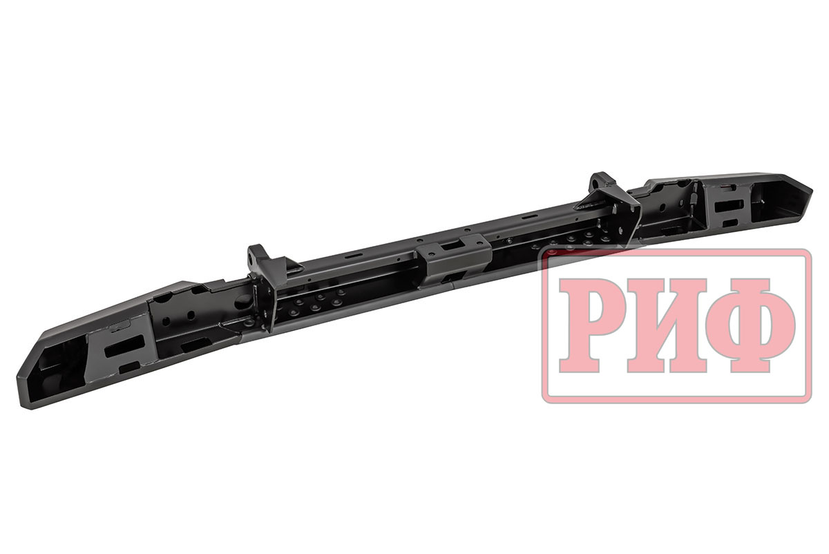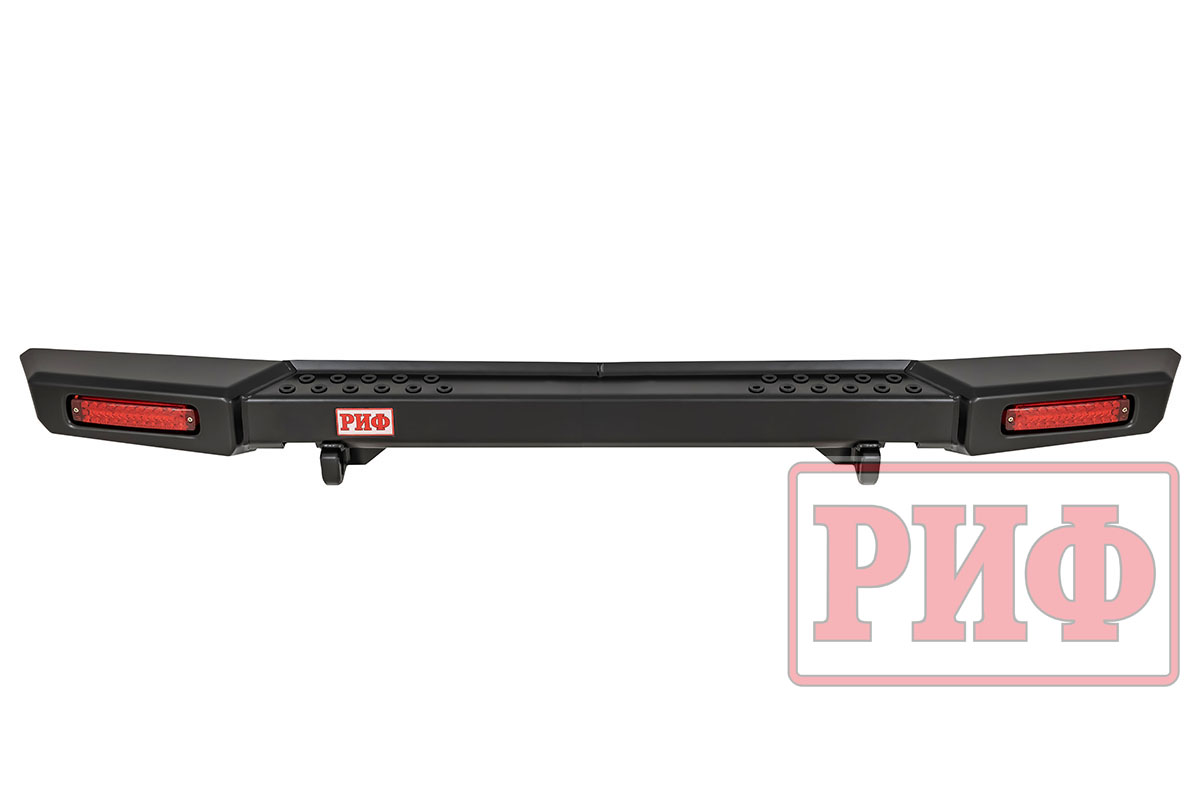 Задний силовой бампер РИФ надежно защитит кузов автомобиля на бездорожье или в городе в случае непредвиденных инцидентов. Бампер оборудован упорами под хай джек и буксирными проушинами для работы с рывковой или буксировочной стропой.