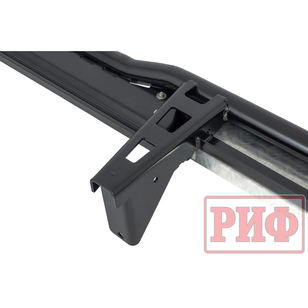 Стандартная окраска силовых порогов РИФ для Toyota Hilux — порошковая, обеспечивающая надежную защиту от коррозии (при отсутствии механических повреждений), цвет — черный.
