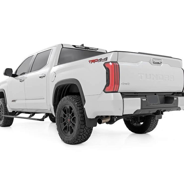 Подножки изготовлены из алюминия военного класса с текстурированным, ребристым и черным порошковым покрытием для долговечности, максимальной тяги и лучшей очистки. Пороги E-Board оснащены тремя раздвижными кронштейнами с каждой стороны, два из которых с моторами, что обеспечивает плавную, ровную механику в разных условиях окружающей среды: от жарких и песчаных летом до мокрых и ледяных условий зимы с дорожной солью и слякотью, и исключает «провисание» части порога с одним мотором после некоторого времени эксплуатации.