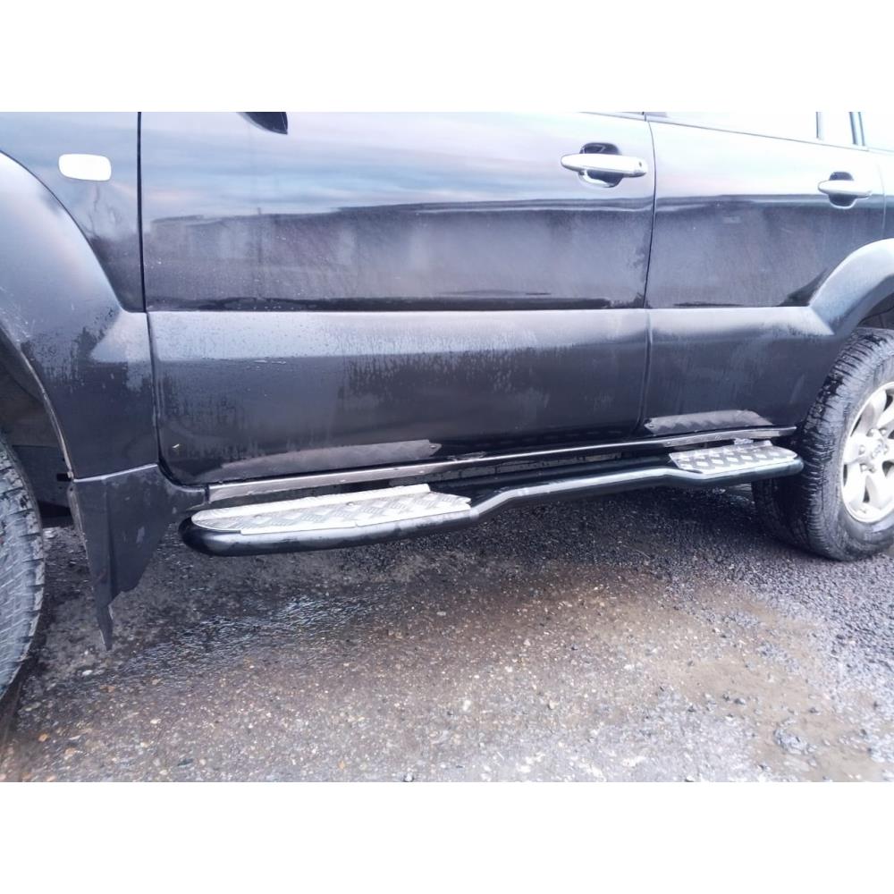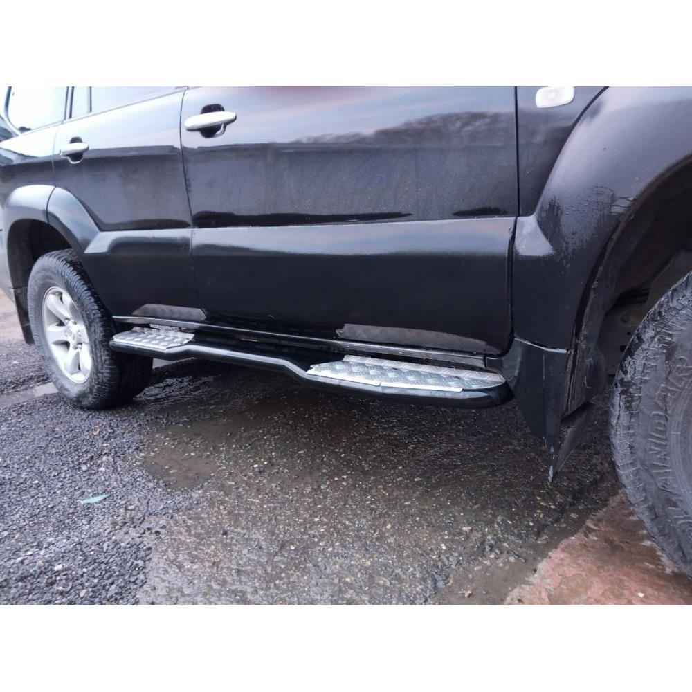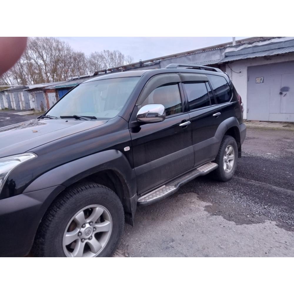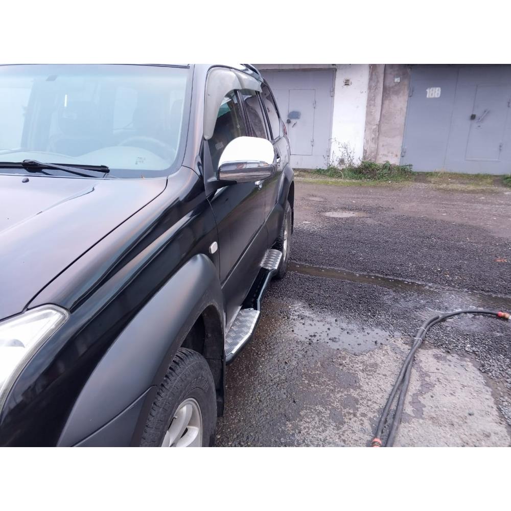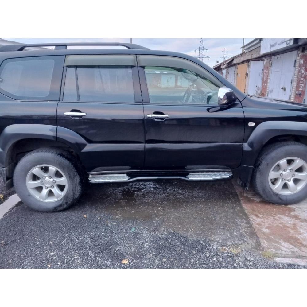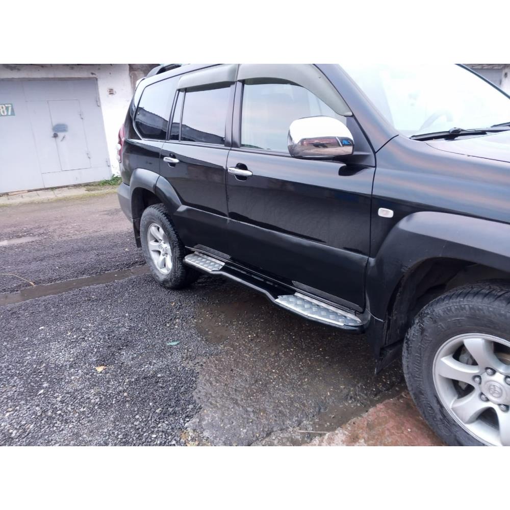 Забраться в салон Land Cruiser Prado 120 благодаря порогам РИФ легко и просто, а прекрасно зарекомендовавшая себя накладка на порог из рифленого алюминия отлично держит любую подошву.